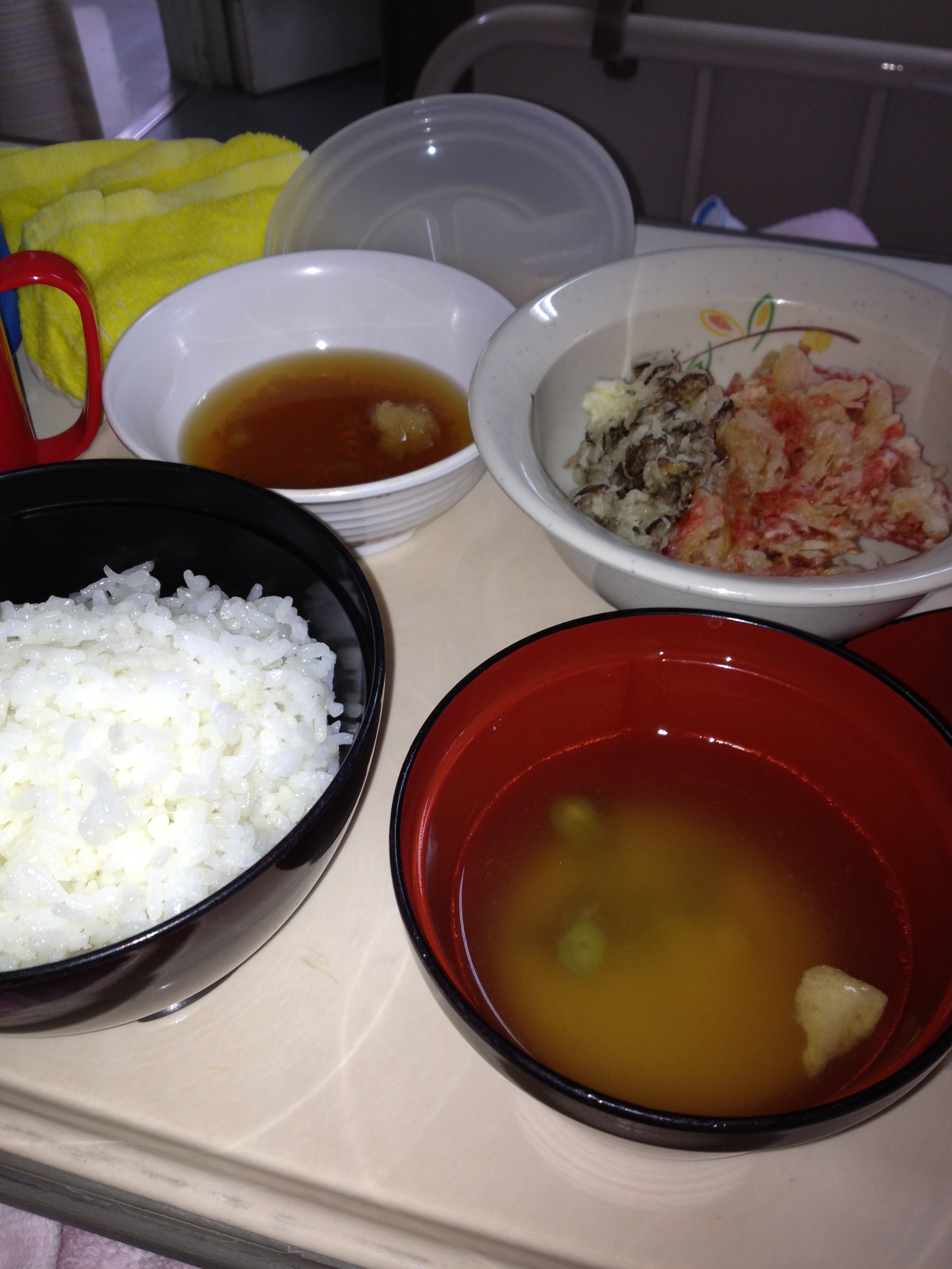 病院食でてんぷらとか出るんだねぇ。もちろんえびとかイカとかないけど。