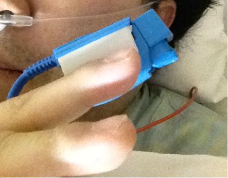 鼻になんか管通ってるし、指先にもなんかついてる。意識はぼんやり。